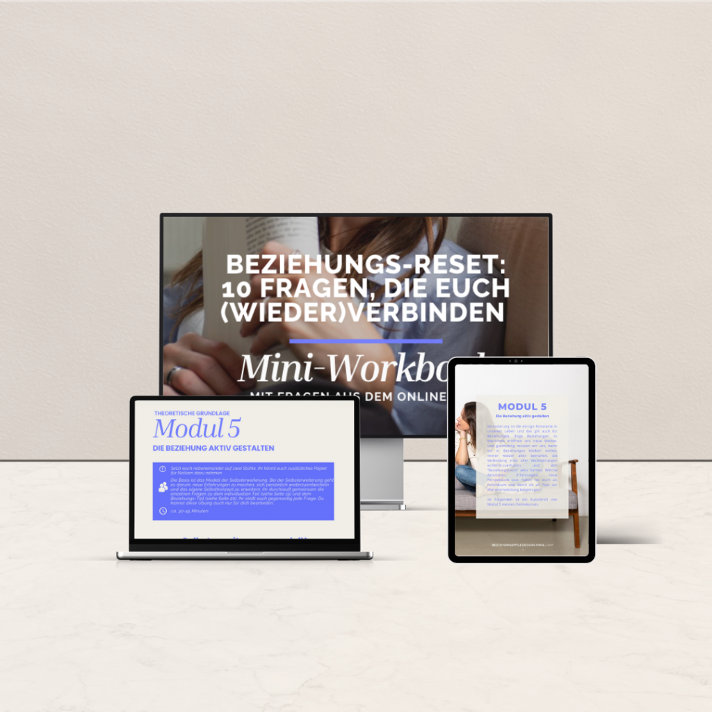 Dieses Mini-Workbook beinhaltet einen Einblick in das Modul 5 aus meinem Onlinekurs und bietet 10 Fragen, die eure Anfangsnähe reaktivieren und in klare Schritte für eure gemeinsame Zukunft übersetzen. Ideal, um euch (wieder) zu verbinden und herauszufinden, ob ihr gemeinsam den nächsten Schritt gehen wollt.